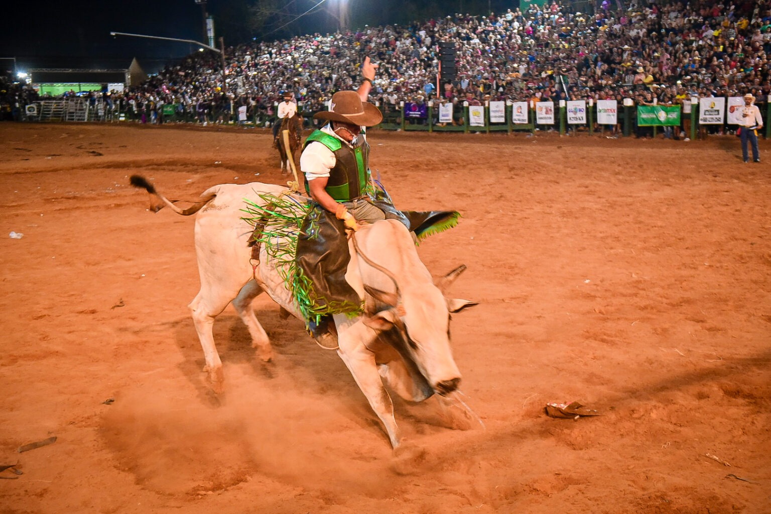 Arquibancadas lotadas, fogos e muita emoção marcaram a última noite de rodeio em touros da 48ª Expoacre, neste domingo, 6. Durante a disputa, dez peões subiram nas costas de touros bravos, com o desafio de resistir por oito segundos e conseguir a maior nota, mas somente cinco competidores se classificaram para a grande final: Francisco Elias do Nascimento Paulino, João Peres Souza, Josué Araújo, José dos Santos Alves e Francisco Assis.