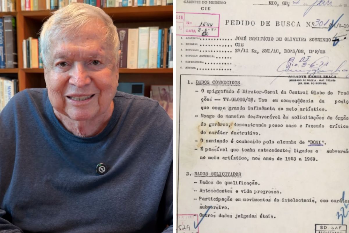 Boni, ex-diretor da TV Globo, surpreendeu os seguidores ao divulgar, nesta quinta-feira (21), um documento oficial da época da ditadura militar. O registro, datado de 1971, trata de um pedido de busca e monitoramento contra ele, feito por órgãos do governo da época.