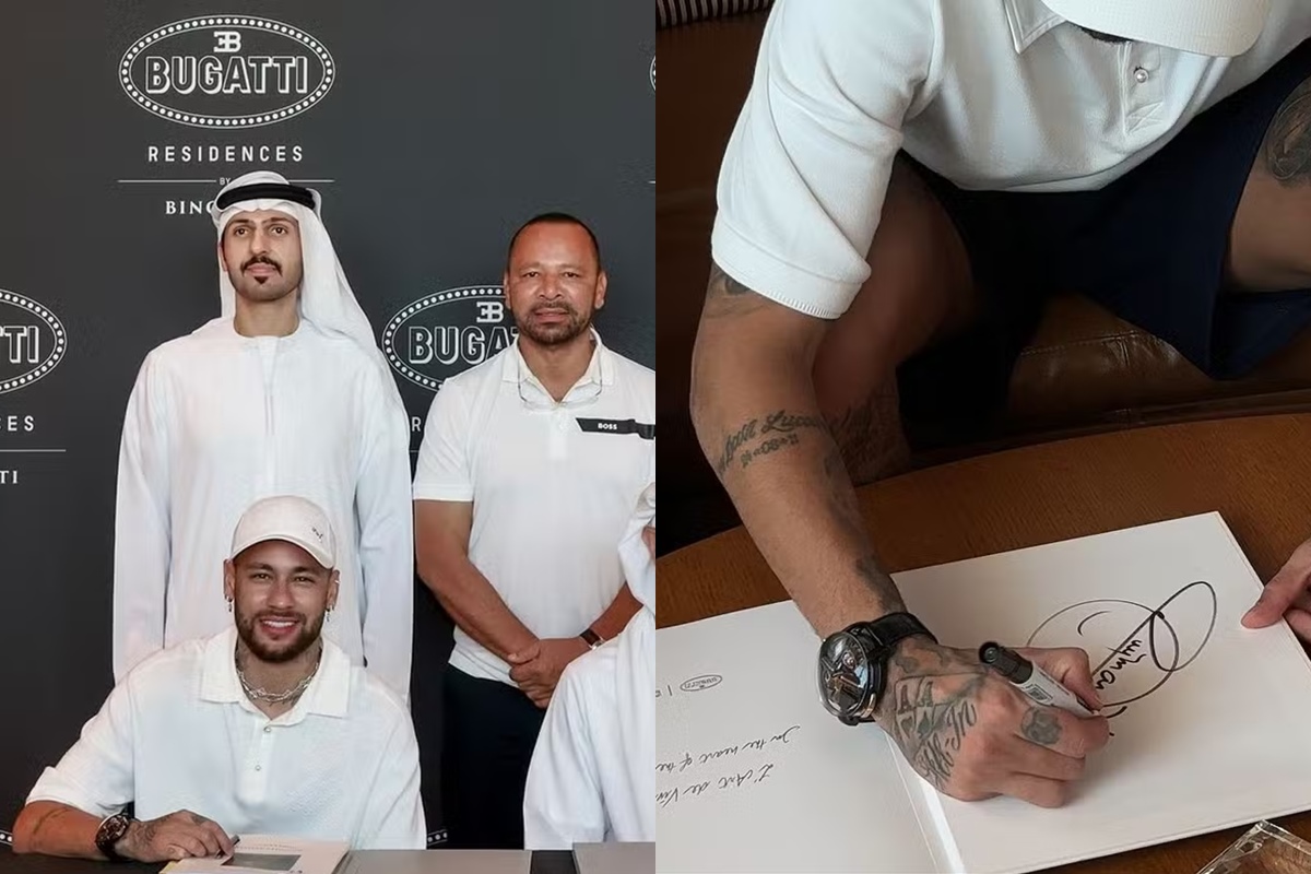 Além de Neymar, o chefe de vendas da Bugatti, Abdullah Binghatti, e os principais executivos da empresa estiveram presente durante a cerimônia oficial de assinatura realizada nesta segunda-feira (18/11).