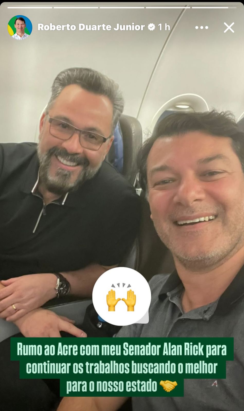 Uma imagem emblemática postada pelo deputado federal Roberto Duarte reforça a suspeita de que Alan deve filiar-se ao Republicanos. Ou, querendo, seguiria carreira solo nos meses que antecedem a pré-campanha até decidir por qual partido ele disputaria as eleições.