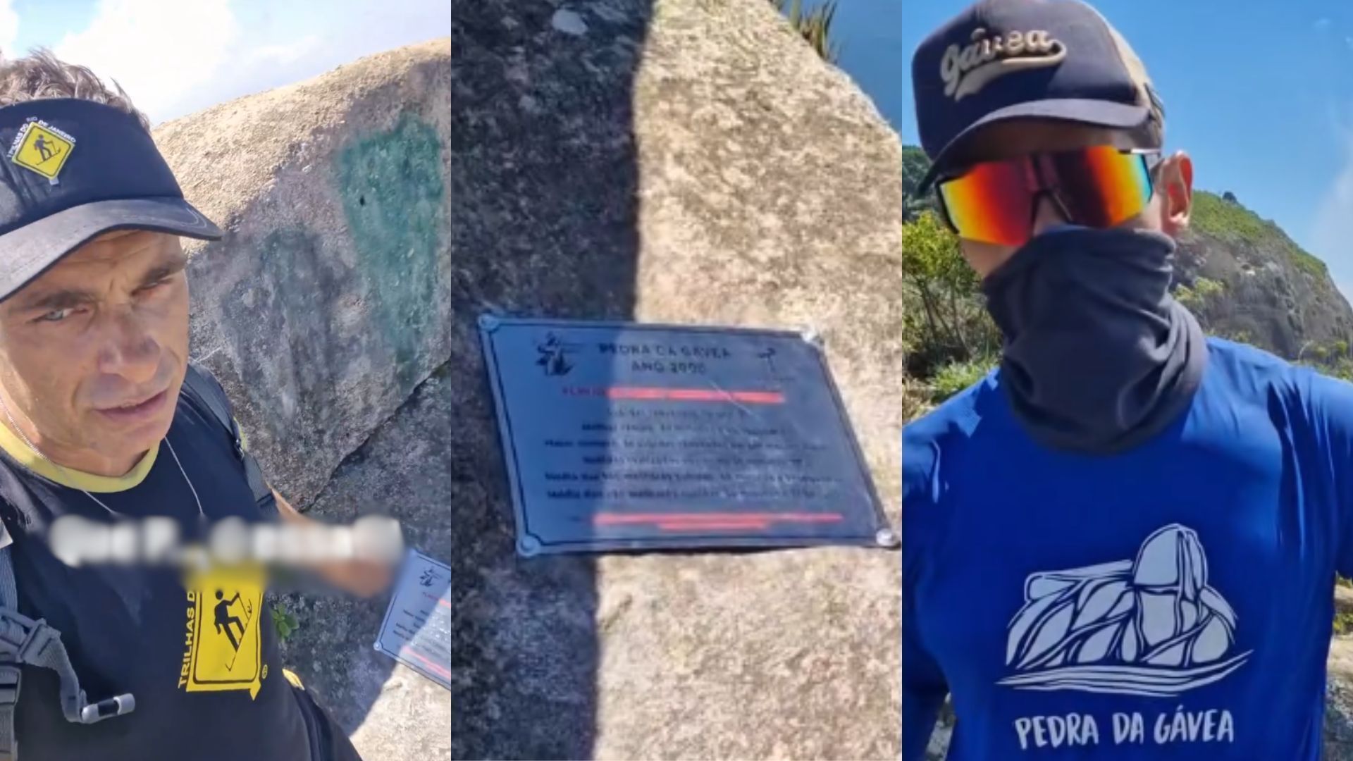 Um grupo de trilheiros manifestou indignação após encontrar uma placa de ferro instalada na Pedra da Gávea, no Rio de Janeiro. A placa, que registra o nome de uma pessoa, número de subidas e tempo recorde, foi considerada inadequada e um precedente perigoso para a preservação do local. O vídeo com a reação dos trilheiros viralizou nas redes sociais.