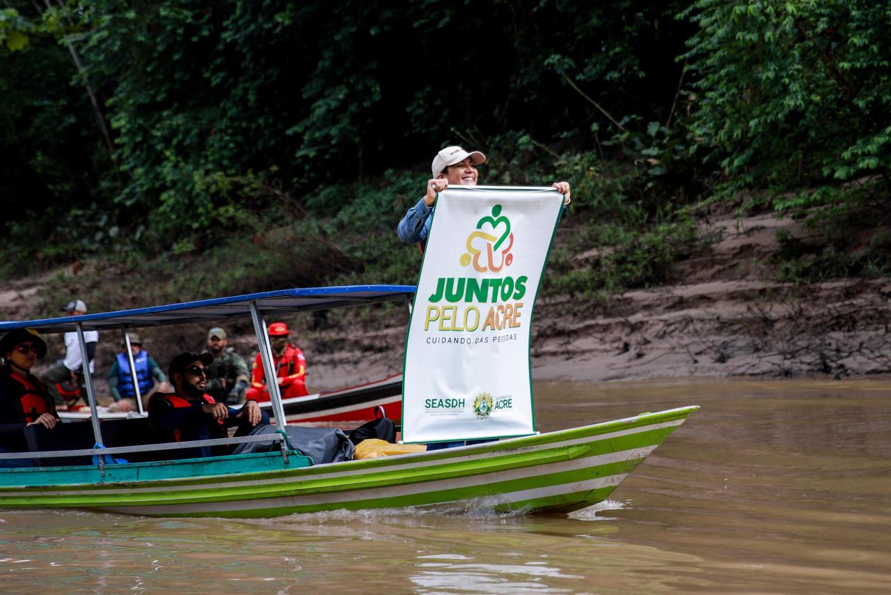 A agenda começou cedo, com deslocamento em bote — uma escolha pessoal da vice-governadora para dialogar com os moradores das margens do rios Tejo. A primeira parada foi na Comunidade Alegria, onde Mailza foi recebida na casa do pastor Antônio José e da irmã Lauzenir, moradores há mais de 30 anos. O almoço simples e afetuoso refletiu o espírito da população local: generoso, acolhedor e resiliente.