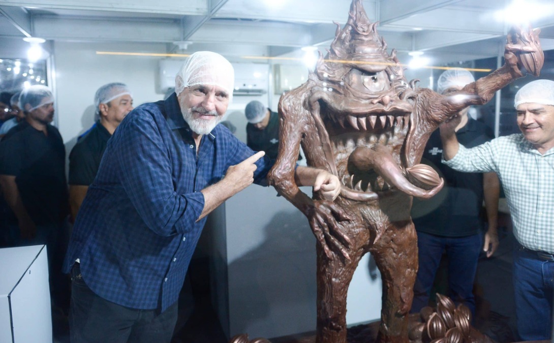 O último dia da Expoacre foi marcado por um momento simbólico e bastante aguardado pelos visitantes, a quebra da estátua de chocolate do Mapinguari, um dos principais atrativos do Espaço da Rota do Cacau durante toda a feira. A escultura, feita inteiramente de chocolate produzido no Acre, encantou o público ao longo dos nove dias de feira e ganhou ainda mais destaque ao ser cuidadosamente fragmentada e distribuída gratuitamente aos visitantes da feira, neste domingo, 3.