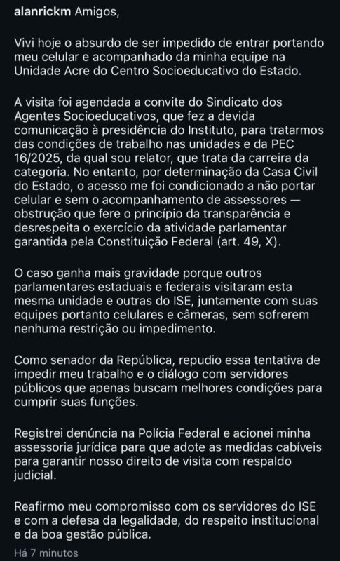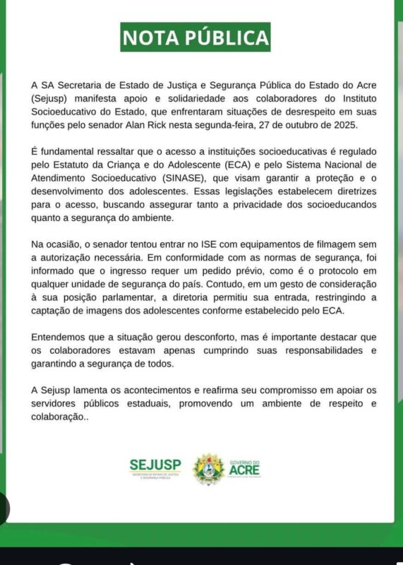 Em nota,vi USE lembra que a regra é orientação do Estatuto da Criança e do Adolescente, e prestou solidariedade aos trabalhadores que cumpriram com sua obrigação. Leia acima