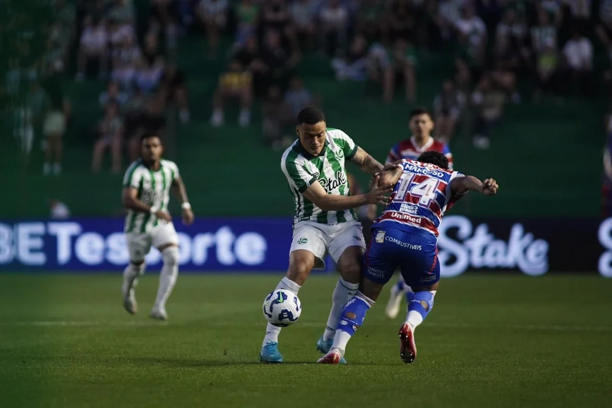 Atuando diante de seus torcedores, o Juventude abriu o placar logo nos minutos iniciais. Após lançamento do meio de campo, a defesa do Fortaleza afastou mal, e a bola sobrou nos pés de Matheus Bilu. Ele ficou cara a cara com o goleiro Brenno e só precisou empurrar para as redes.
