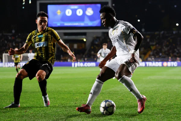 Vinicius Junior no confronto entre Kairat x Real Madrid