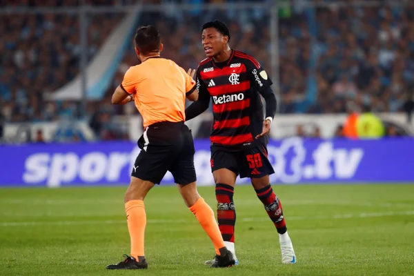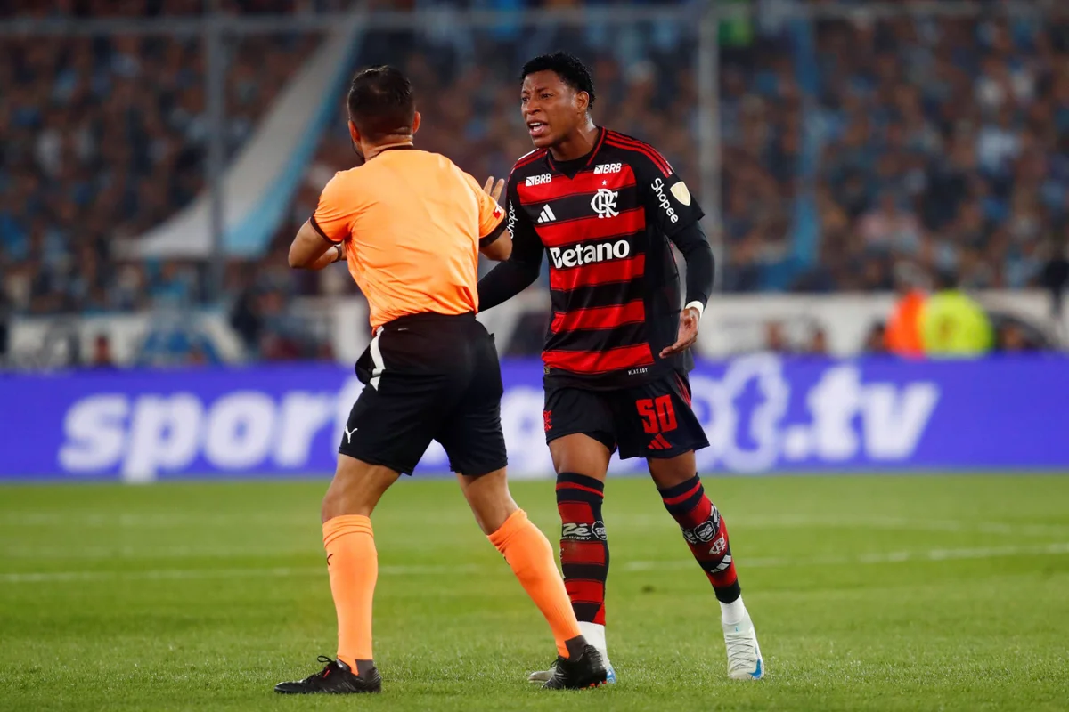 Momento que Plata é expulso na partida entre Flamengo x Racing pela Libertadores