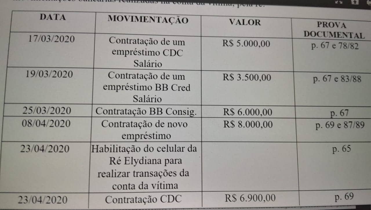 Em apenas dois meses Elydiana Gomes teria feito pelo menos dez transações, entre saques e transferências, em caixa eletrônicas.