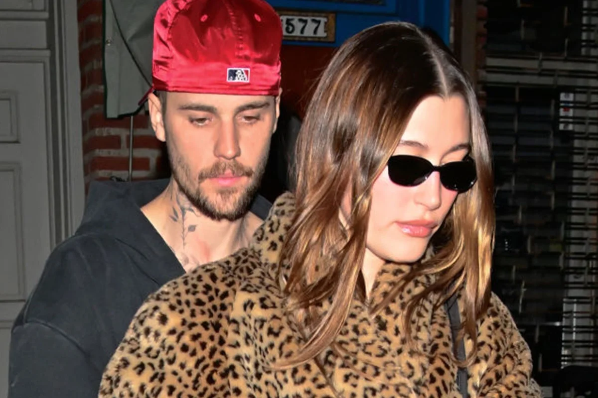 Justin Bieber e Hailey Bieber são clicados por um fotógrafo