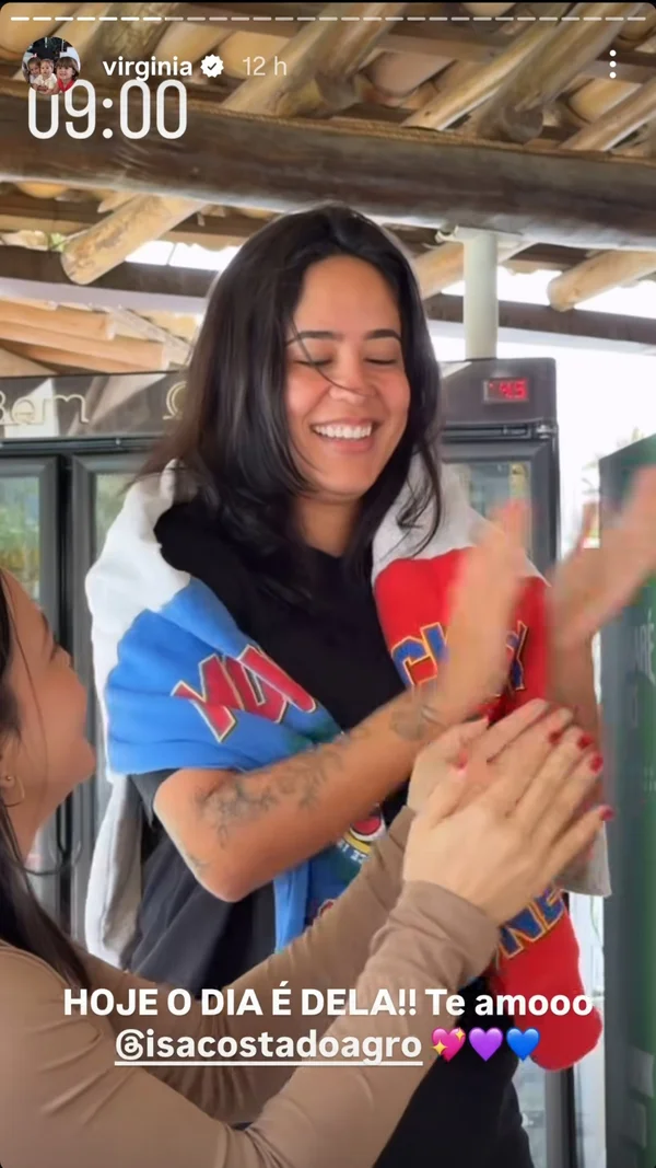 A dupla aproveitou o dia na mansão da influenciadora em Mangaratiba (RJ). Pela manhã, antes de mostrar que recebeu um polêmico buquê de flores, Virginia compartilhou os parabéns da ex-cunhada, e pela noite, dedicou uma mensagem à irmã do cantor.