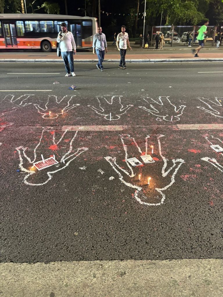 Em frente ao Masp, silhuetas de corpos foram pintadas e velas foram acendidas em menção aos mortos na ação policial. Durante o trajeto, manifestantes realizaram paradas em pontos específicos da Avenida Paulista.