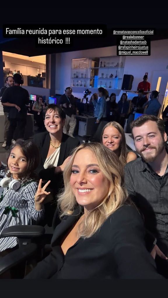 Em uma das fotos, ela surgiu ao lado de Natasha Dantas, atual esposa do veterano da televisão. “Somos só orgulho, não é mesmo?”, escreveu a apresentadora do “Hoje em Dia”. Pouco depois, ela também compartilhou um clique com as filhas, Rafaella, Manuella, Natasha e Miguel, filho de Renata Vasconcellos. Confira os cliques: