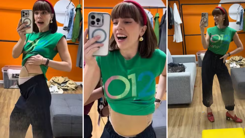 Alice Wegman mostra que estava com barriga falsa na gravação • Reprodução/Instagram