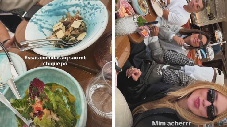 Nos registros, os dois apareceram almoçando juntos. “Essas comidas aqui são muito chiques”, escreveu a influenciadora.