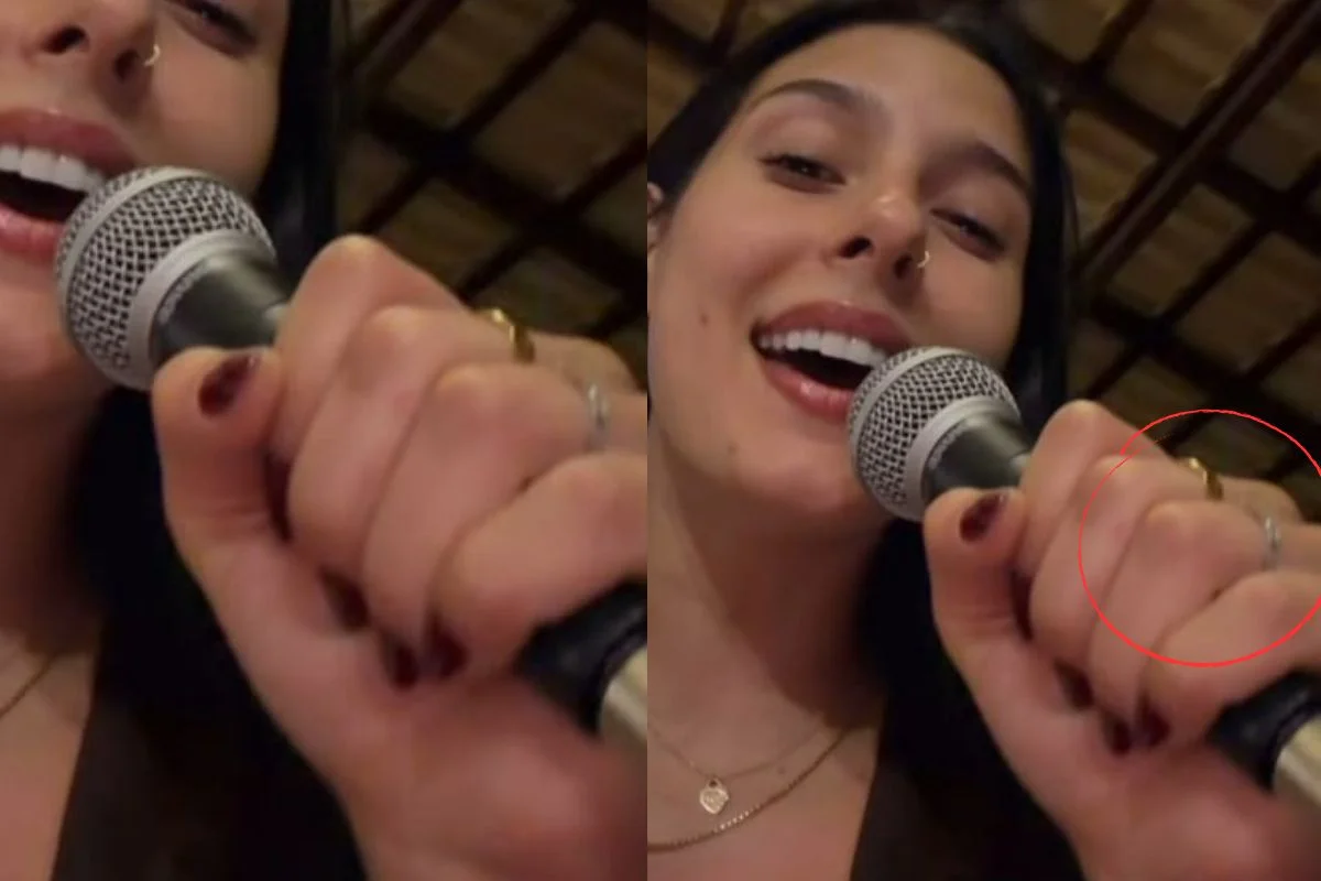 Em seguida, em um story compartilhado por Ana Castela na noite desta terça (14), ela também aparece com uma joia muito parecida no mesmo dedo.
