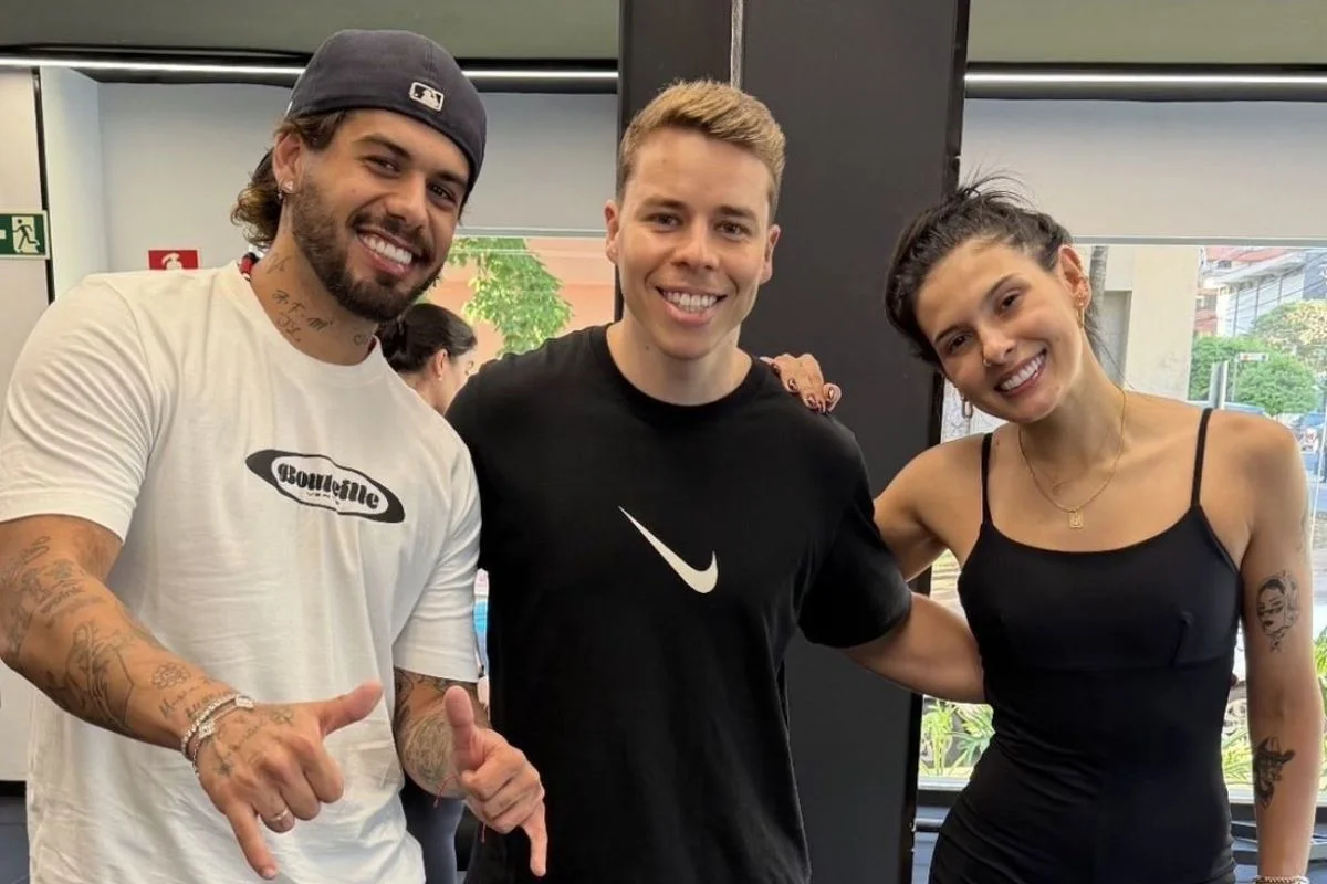 Em uma primeira foto, a dupla aparece na academia ao lado do personal da cantora. E os internautas logo perceberam um anel novo no dedo anelar na mão esquerda do filho de Leonardo.