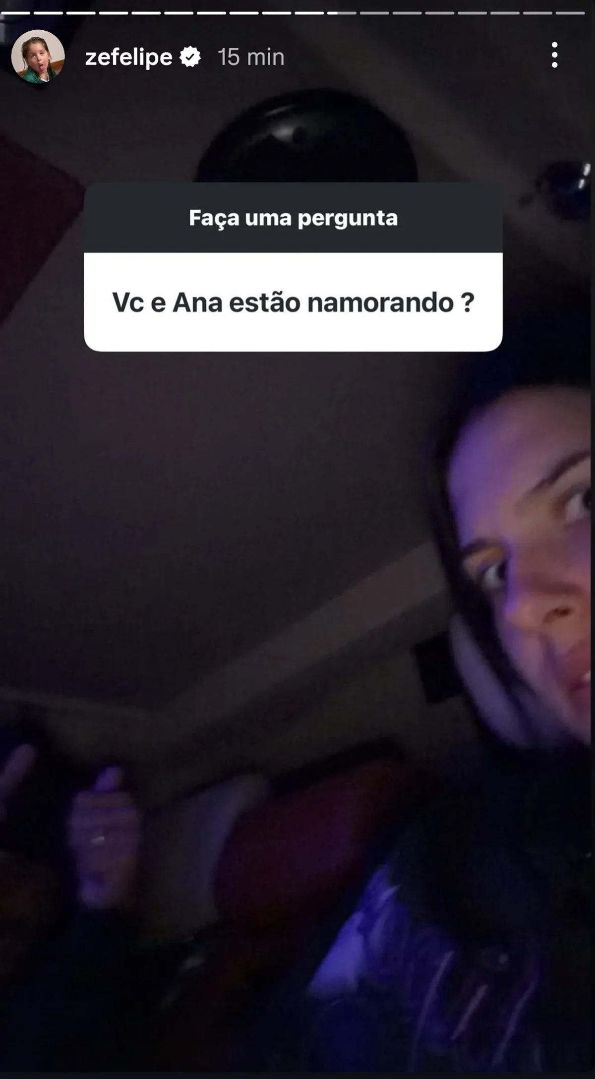 “Você e Ana estão namorando?”, perguntou um seguidor a Zé Felipe. Em resposta o filho de Leonardo apenas levantou os dois dedões para cima, enquanto Ana Castela olhava espantada para a câmera.
