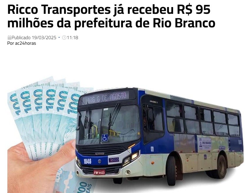 Já se passaram quatro anos de uma relação suspeita entre o prefeito de Rio Branco, Tião Bocalom, com os proprietários da empresa Ricco, a empresária Bruna Fernandes Dias, que explora o transporte público na capital. O prefeito já autorizou subsídios na ordem de R$ 95 milhões ao grupo, sem tomar providências sobre a precariedade do serviço que, todos os dias, prejudicam os usuários sem qualquer prestação de contas ou fiscalização por parte da RBtrans, a autarquia que gerencia o contrato.