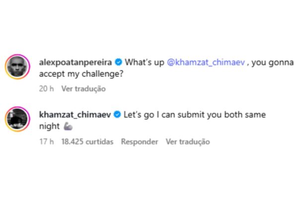 Glover também respondeu a provocação de Chimaev e disse que não o enfretaria por já ter se aposentado. O russo publicou uma resposta no próprio post de Poatan e reiterou o desafio que havia proposto inicialmente. “Vamos nessa, consigo finalizar vocês dois na mesma noite”, retrucou o Lobo.