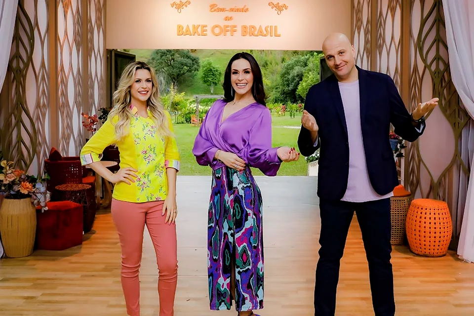 Beca Milano, Nadja Haddad e Giuseppe Gerundino na 8ª temporada do Bake Off Brasil