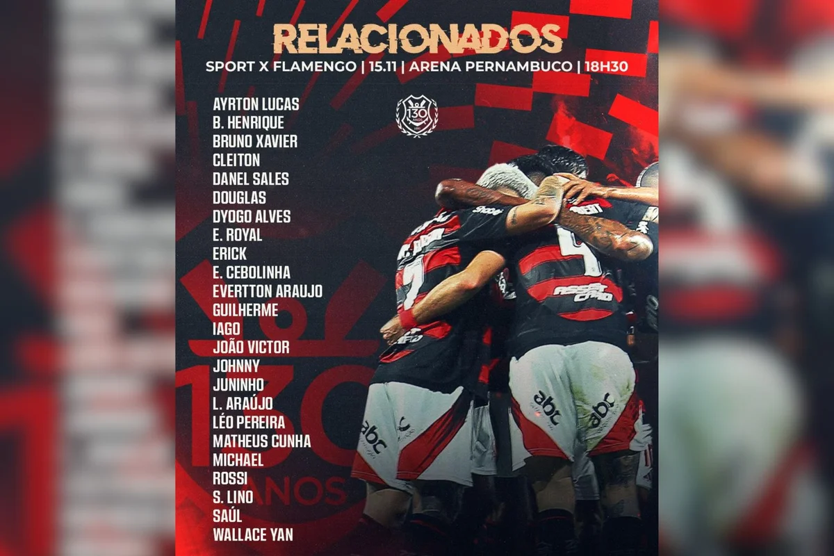 O Flamengo desembarca no Recife com um dos elencos mais reduzidos da temporada: 12 desfalques entre cortes médicos e convocações deixam Filipe Luís sem margem de escolha para enfrentar o Sport neste sábado (15/11), em jogo atrasado da 12ª rodada do Brasileirão.