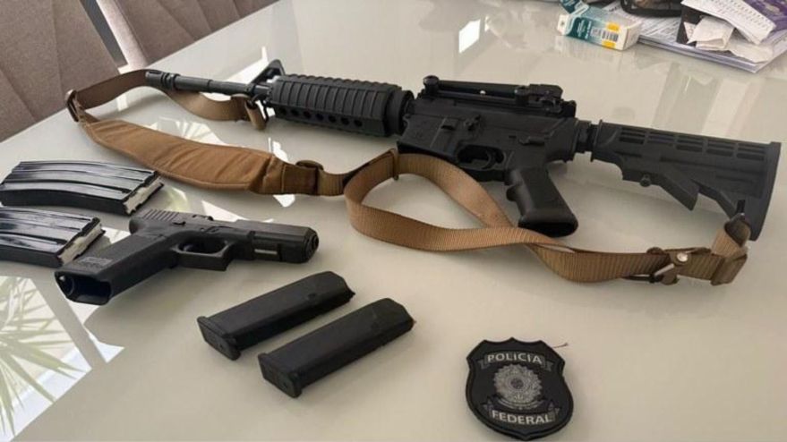 • Em Goiás, os agentes da PF apreenderam um fuzil e uma pistola.