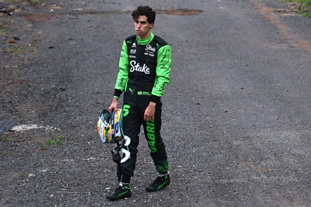 Bortoleto bateu logo no início da corrida. O corredor da Sauber tocou em Lance Stroll, da Aston Martin, perdeu o controle do carro e colidiu com o muro. O brasileiro disputava posição com o canadense, quando ficou espremido e colidiu após passar parte do veículo pela grama.