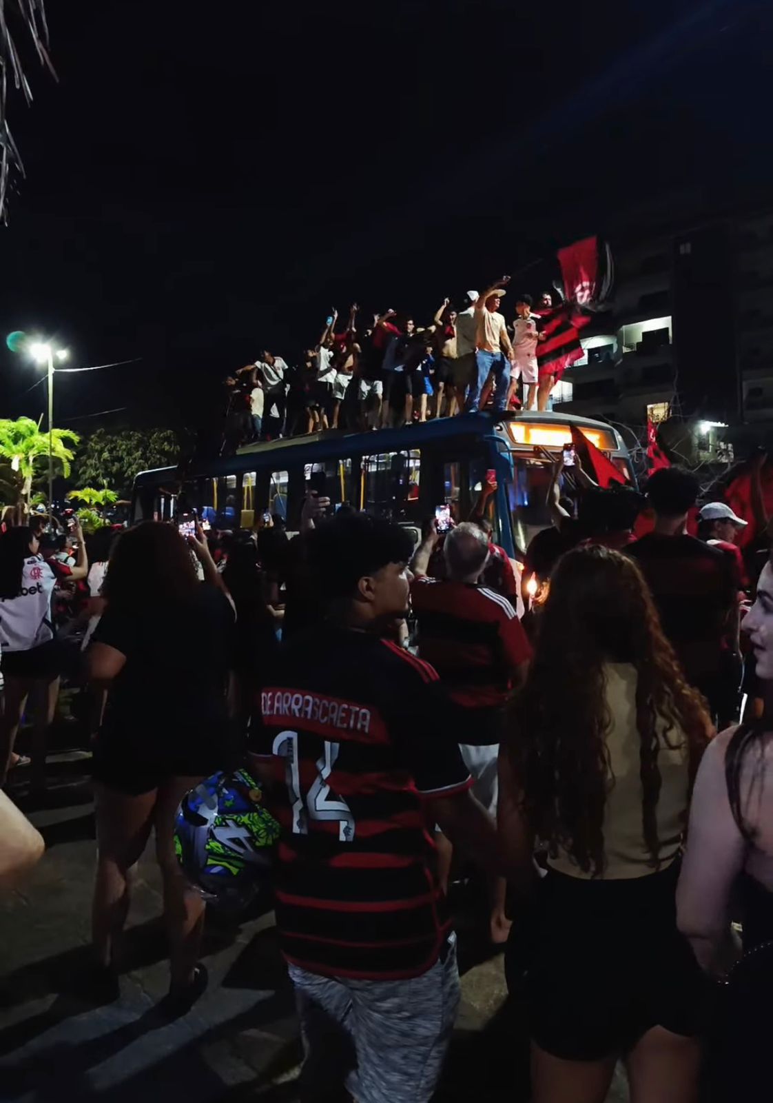 Foi no Parque da Maternidade, em Rio Branco, na noite deste sábado, logo após a conquista do tetracampeonato da Taça Libertadores. Dezenas deles subiram no coletivo, que seguia para o Terminal Rodoviário. Passageiros e funcionários da empresa compreenderam o momento festivo, tradição no Acre, sempre nesse mesmo espaço público.