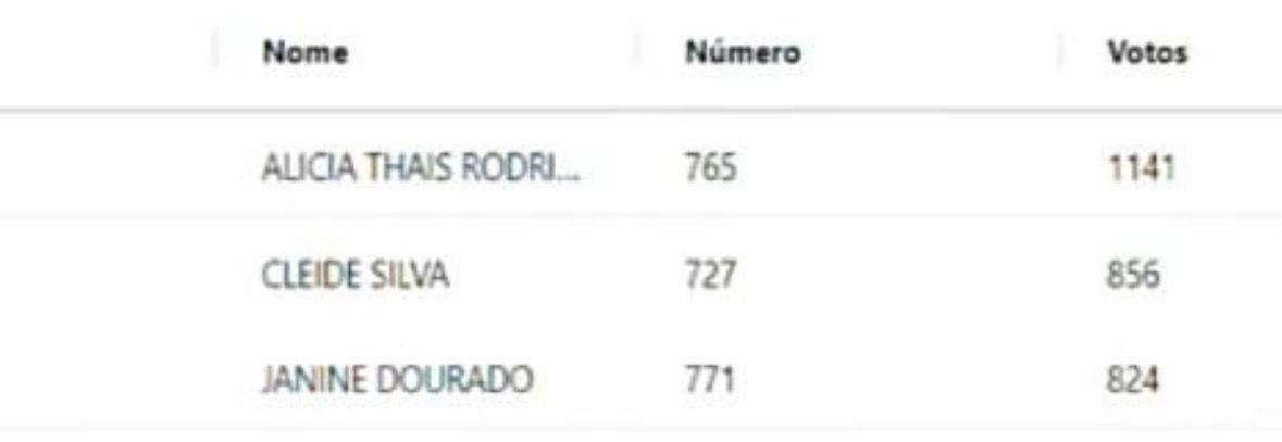 Alicia Thais, candidata do presidente da Câmara de Vereadores, Joabe Lira, é a campeã de votos; Cleide Silva, a aposta do deputado Fagner Calegario, ligado a empresas terceirizadas, vem em seguida. Janine adorado, irmã do juiz Giordane Dourado, conquistou a terceira vaga.