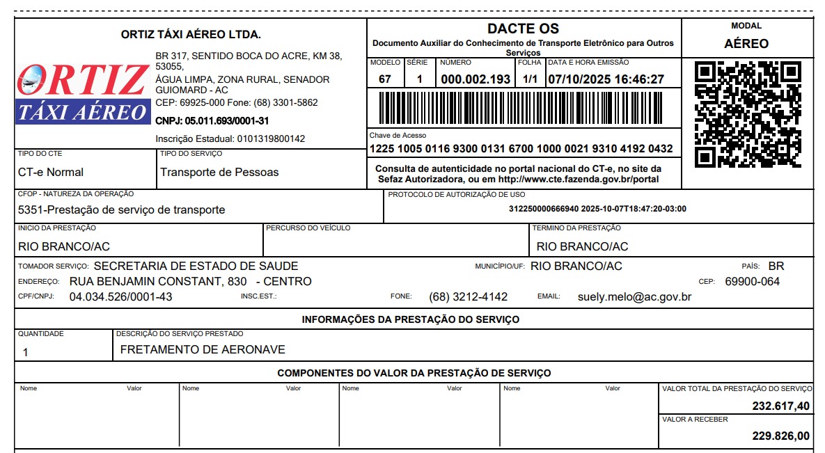 O senador Alan Rick mentiu ao afirmar que garantiu vaga a um bebê do Acre no Hospital de Base de São José do Rio Preto, em São Paulo. Toda a tratativa foi feita pela Sesacre e as despesas operacionais e de logística, transporte aéreo e equipe médica, foram pagas pelo Governo do Acre. A criança, que tem cardiopatia grave, foi transferida na quinta-feira após avaliação dos profissionais acreanos, e está sob acompanhamento medico. O documento abaixo mostra o desembolso do tesouro estadual (R$ 232.6 mil) junto à empresa aérea.