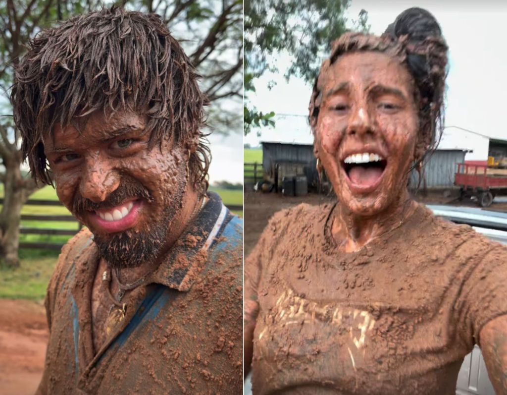 Ana Castela, 21, e Zé Felipe, 27, aproveitaram a tarde de sábado (1) livre para se divertirem rolando na lama na fazenda da cantora. Os dois apareceram quase irreconhecíveis nas redes sociais após a brincadeira.