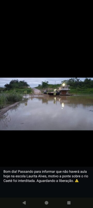 O Rio Caeté transbordou, encobriu a ponte que faz a ligação entre as margens do manancial e a rodovia amanheceu inundada, sem condições de tráfego para veículos menores e caminhões.