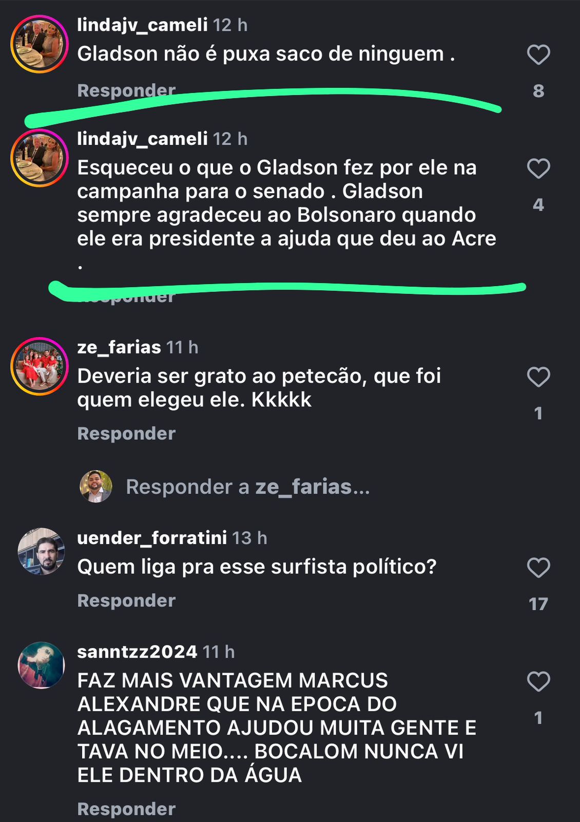 A mãe do governador, dona Linda Cameli, reagiu: