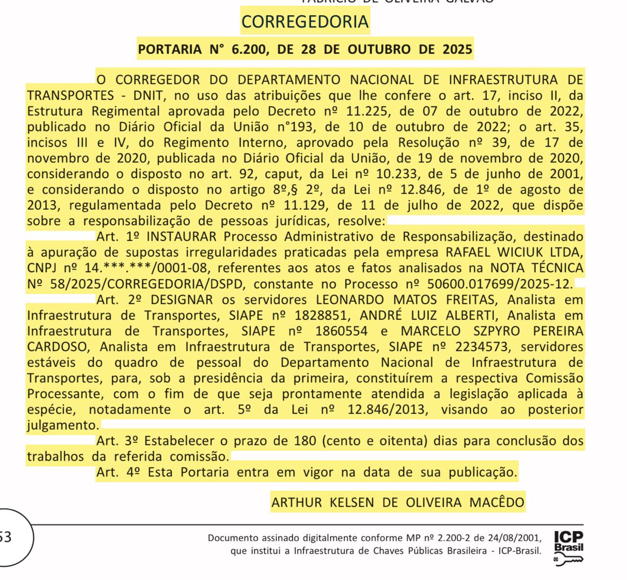 As investigações tiveram início em fevereiro de 2025. Também foram encontradas evidências de uso de documentação falsa para comprovar qualificação técnica de uma das empresas envolvidas (no caso a Rafael Wiciuk Ltda).