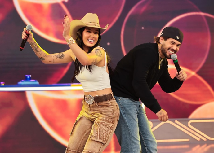 15 de 20O novo casal Ana Castela e Zé Felipe se divertiu no palco do “Domingo Legal, do SBT • Reprodução/Instagram