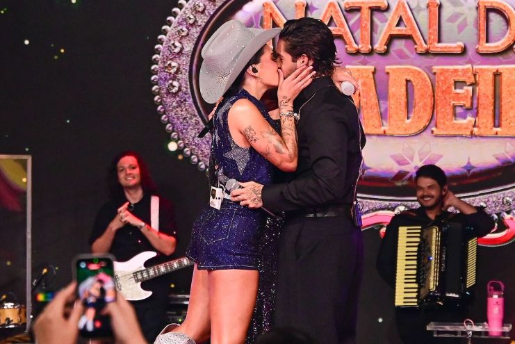 8 de 20Ana Castela e Zé Felipe se beijam em gravação de Natal do SBT • Reprodução / Msb – Agnews