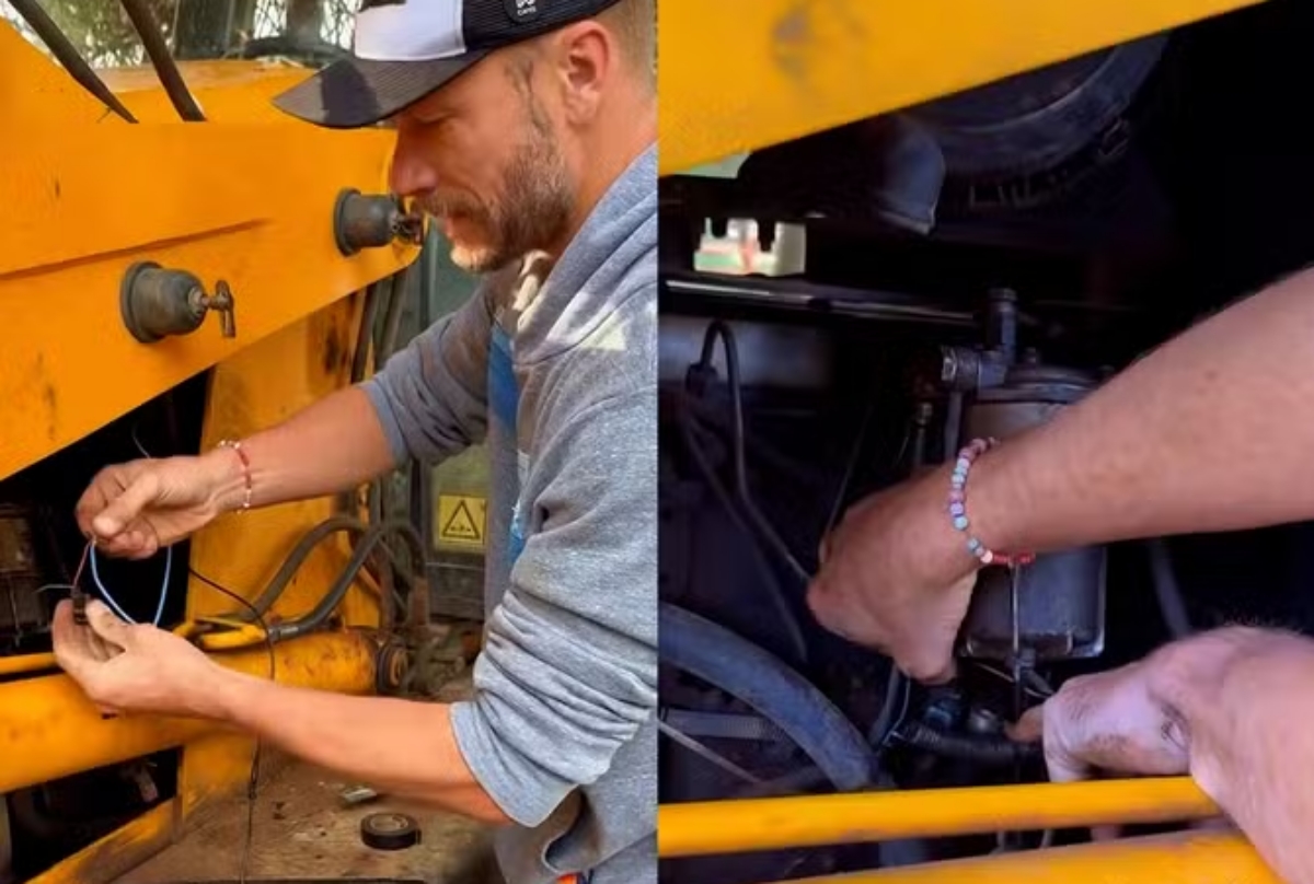 Rodrigo Hilbert conserta trator e seguidores brincam: “Já chega”