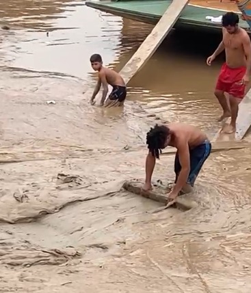 A manhã do último (4) foi de trabalho pesado para um grupo de ribeirinhos da cidade de Cruzeiro do Sul (AC) que precisava utilizar o porto da feira livre para desembarque da produção agrícola. O grupo acompanhado de uma criança teve que retirar por conta própria o lamaçal deixado pela vazante do Rio Juruá sob a rampa de acesso à terra firme. A situação se agravou com as fortes chuvas de domingo, que entrou pela manhã de segunda.