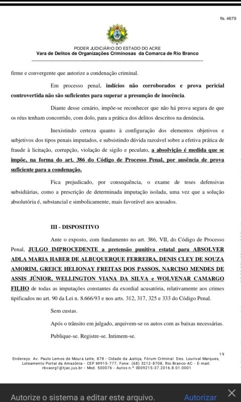 Como o Ministério Público do Acre, não apresentou recurso contra a decisão, no último dia 9 o processo foi arquivado definitivamente.