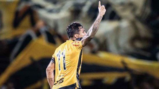 5 de 8Robson comemora um dos três gols que marcou para o Novorizontino sobre o Palmeiras • Pedro Zacchi/Ag.Paulistão/Sua Foto no Jogo