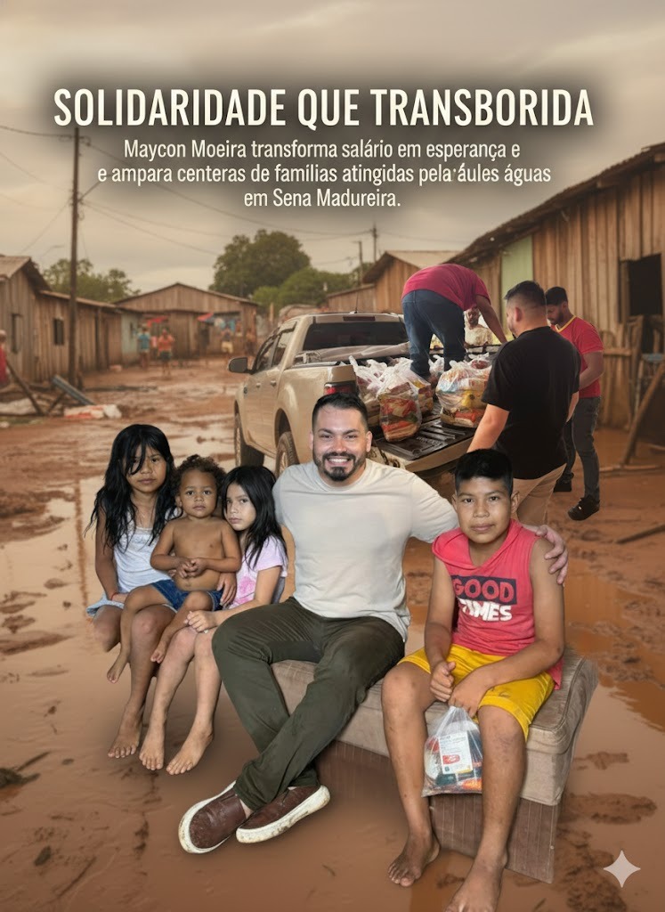 Nas ruas onde a água subiu, o desespero costuma ser a primeira visita. Mas, em Sena Madureira, este ano, o transbordamento não foi apenas de canais e rios; foi, acima de tudo, de humanidade. O gesto do vereador Maycon Moreira transcendeu o dever político para se tornar uma lição de cidadania e amor ao próximo – um sopro de esperança em meio ao cenário desolador das águas que invadiram centenas de domicílios.