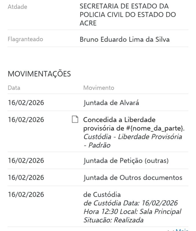 A decisão foi proferida pelo juiz da Vara Estadual das Garantias, responsável por analisar a legalidade da prisão e a necessidade de manutenção da custódia preventiva. Até o momento, o fundamento específico que embasou a concessão da liberdade provisória não foi divulgado oficialmente pela Justiça acreana. Ainda assim, ficou estabelecido que o jovem deverá cumprir medidas cautelares, que podem incluir uso de tornozeleira eletrônica, comparecimento periódico em juízo, proibição de se ausentar da comarca e outras restrições determinadas pelo magistrado.
