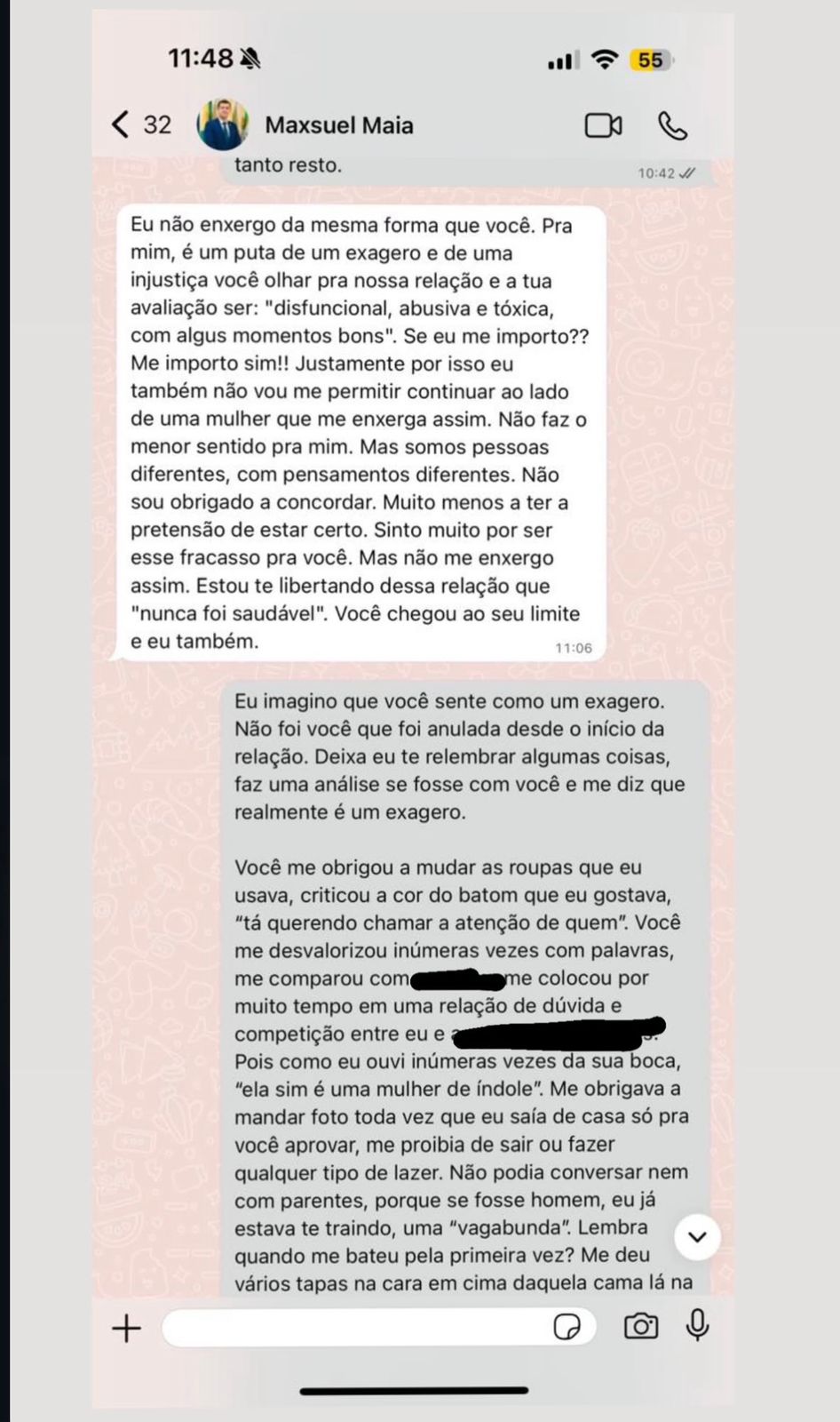 A narrativa ganhou contornos ainda mais sombrios quando a ex-mulher do prefeito veio a público. Em um contra-ataque jurídico e midiático, ela acusou o gestor de agressão física.