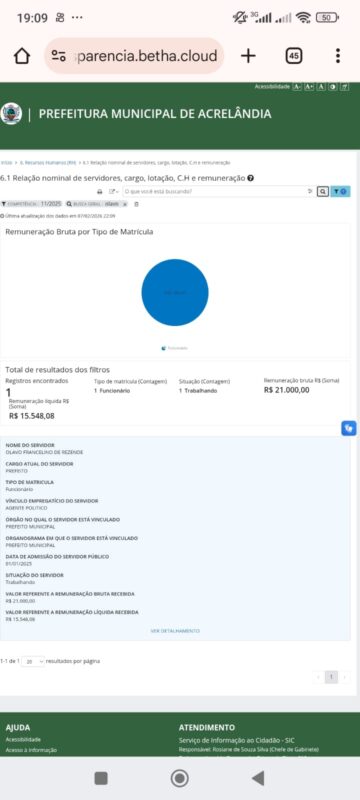 Uma força-tarefa do Ministério Público Eleitoral e do Tribunal de Contas do Estado derrubou a Lei Municipal nº 832/2023, sancionada em março daquele ano pelo prefeito de Acrelândia, Olavo Francelino de Resende. A lei, agora considerada inconstitucional, instituiu um reajuste de 16,50% nos vencimentos base do próprio gestor, sua esposa, seu vice e dos secretários municipais. O rombo financeiro nas contas públicas de Acrelândia pode chegar a R$ 650 mil em salários indevidos.