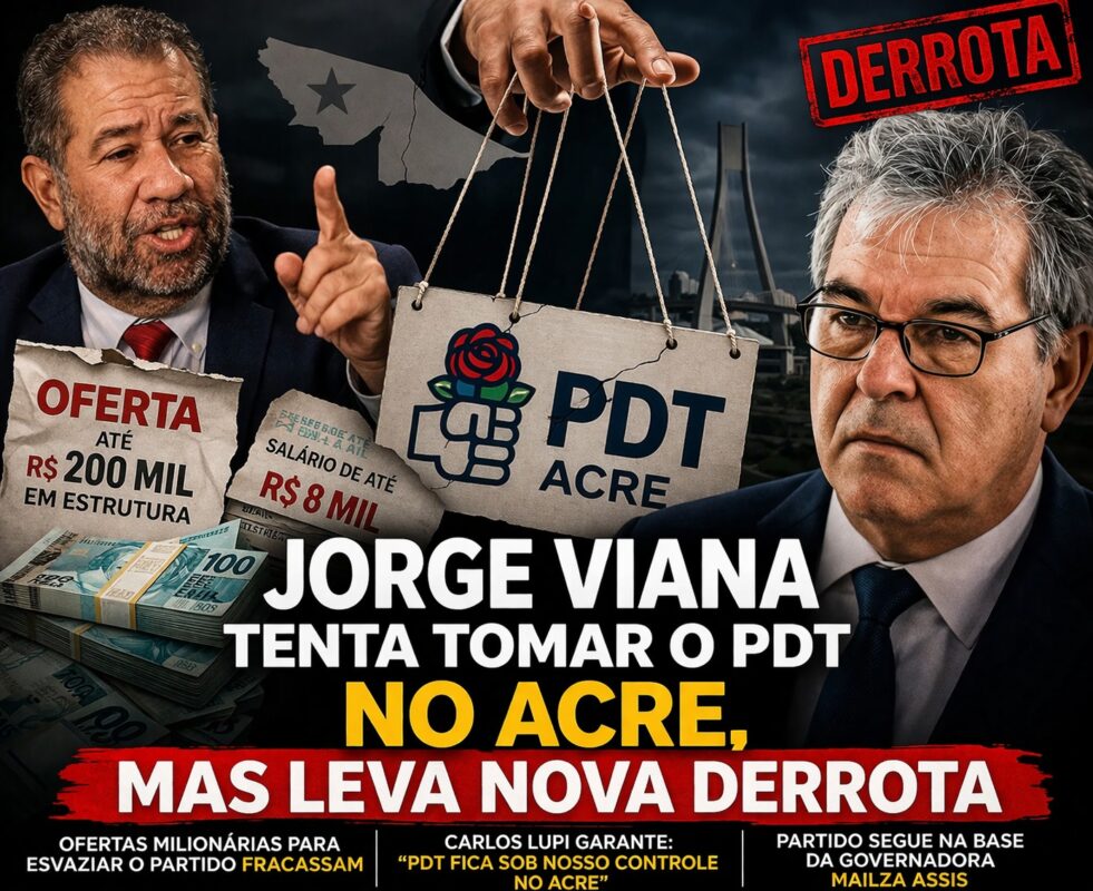 Nos bastidores da política acreana, a avaliação predominante é que a tentativa de intervenção no PDT acabou se transformando em mais um revés para Jorge Viana, ampliando o desgaste provocado pela movimentação anterior envolvendo o Podemos.
