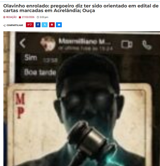 Olavinho enrolado: pregoeiro diz ter sido orientado em edital de cartas marcadas em Acrelândia; Ouça