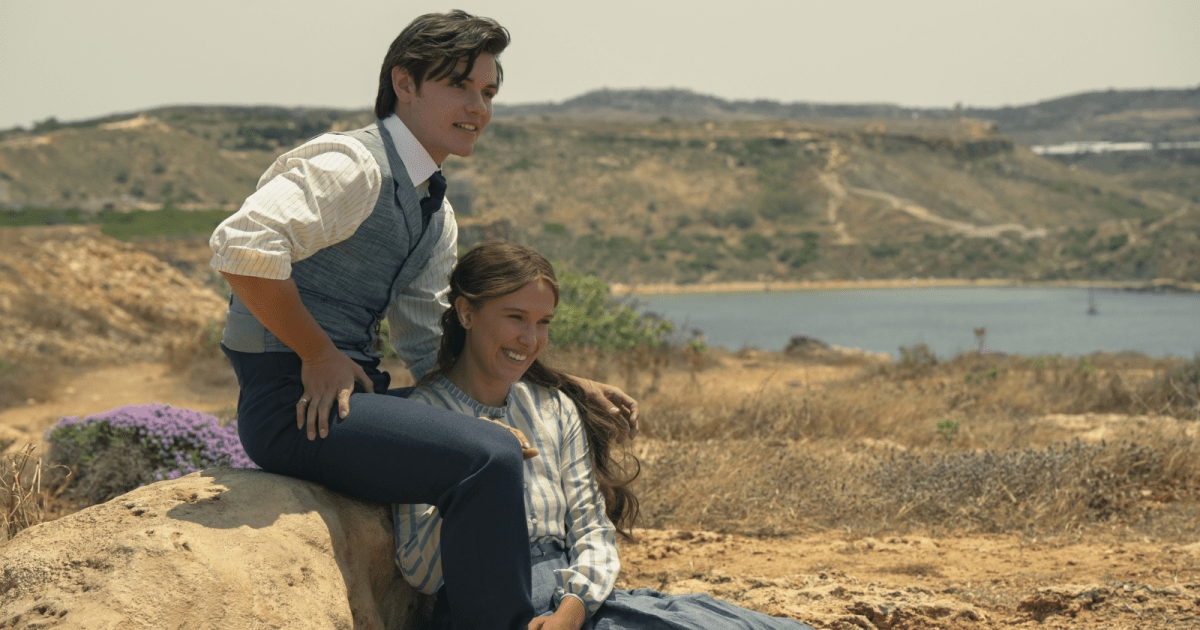 Nas fotos, a dupla aparece caracterizada como Enola (Brown) e Visconde Tewkesbury (Partridge) em cenários românticos. Além deles, Henry Cavill e Helena Bonham Carter também aparecem interagindo com a protagonista — na trama, eles interpretam Sherlock Holmes e Eudoria Holmes, respectivamente.